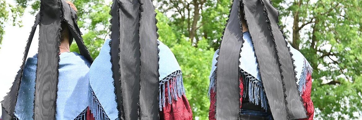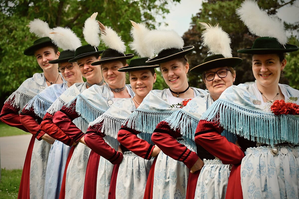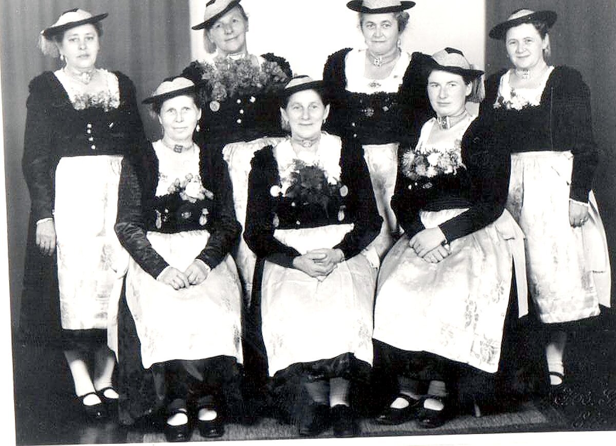 Die Frauentracht besteht aus einem roten Rock, einem roten Spenzer sowie einem weißen Einstecktuch. Darüber wird ein schwarzes Schnürmieder sowie ein Tuch und eine Schürze aus hellblauer Seide getragen, darunter eine weiße Baumwollstrumpfhose, eine Drehhose sowie ein Unterrock. Komplettiert wird die Tracht jedoch erst durch schwarze Spangenschuhe, grünen Hut mit Adlerflaum, einen sauberen Dutt und rote Nelken im Mieder.