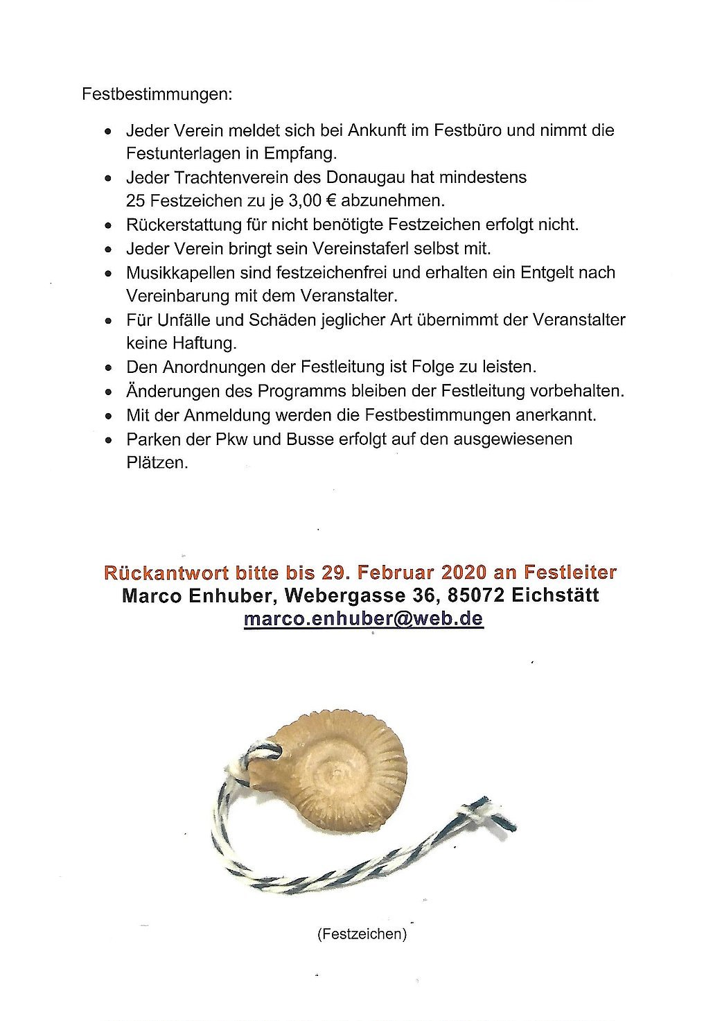 Bitte Festzeichen bis 15. Mai 2020 auf das Konto des Trachtenvereins überweisen: